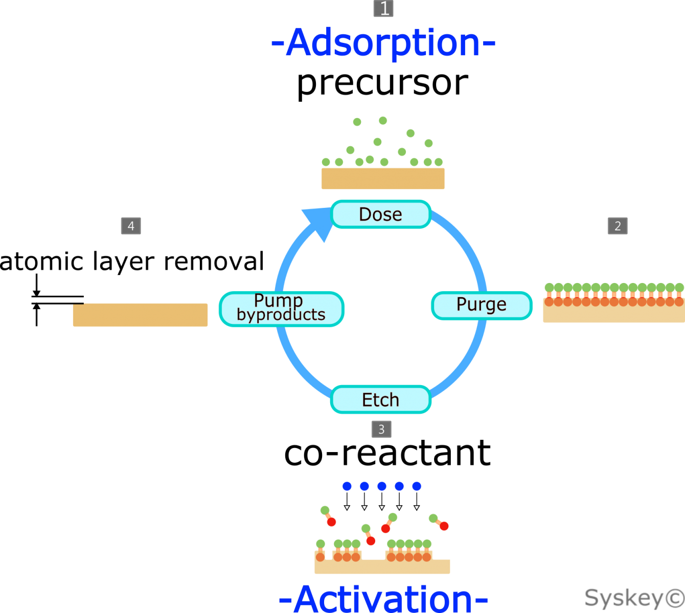 Atomic layer etching (ALE) is an advanced etching technique that can precisely control its etching depth. As the functional size of the device is further reduced, further use of ALE is required to achieve its required accuracy.